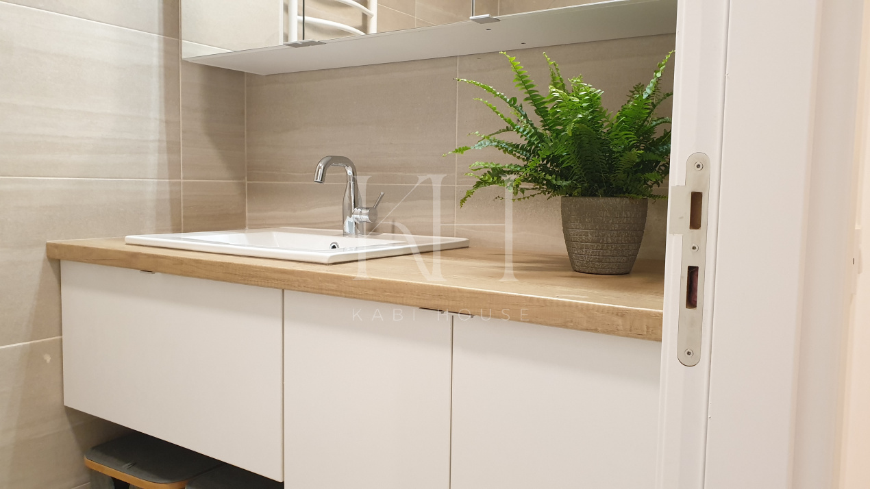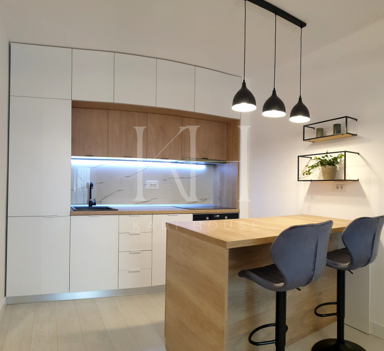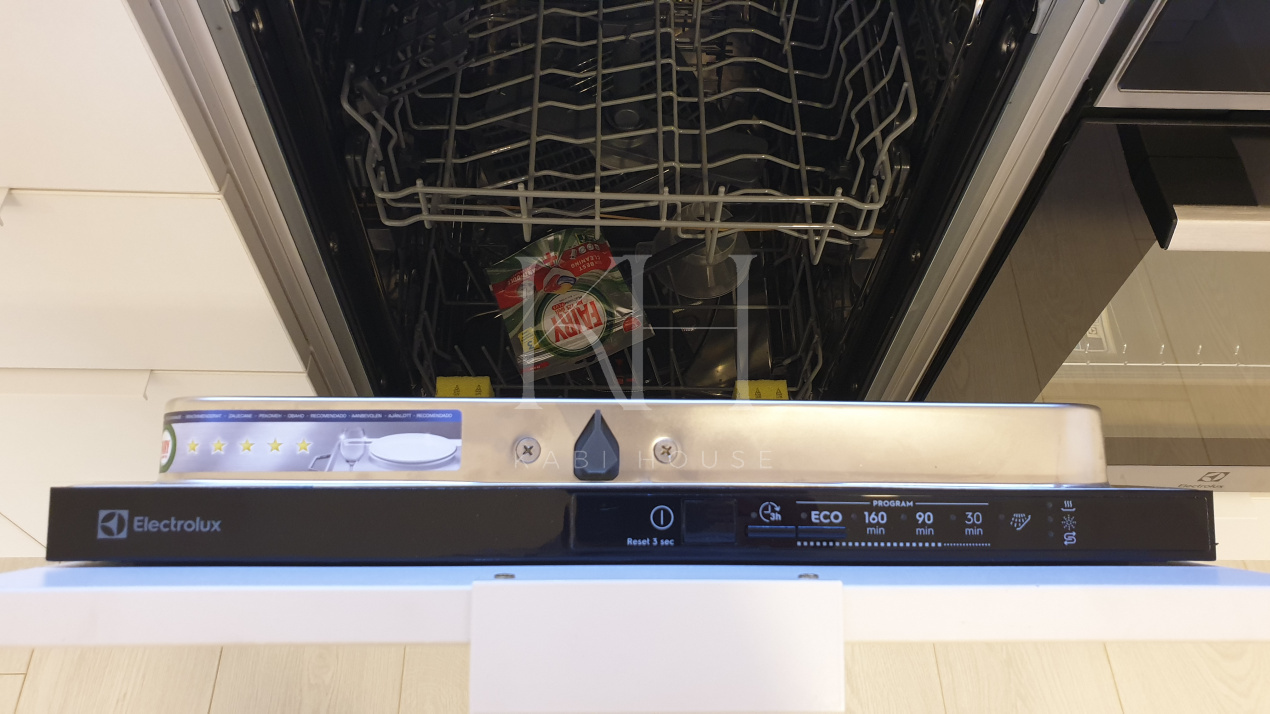 – Bucătărie complet echipată (plită, cuptor, hotă, mașină de spălat vase, frigider, mașină de spălat rufe – toate Electrolux)