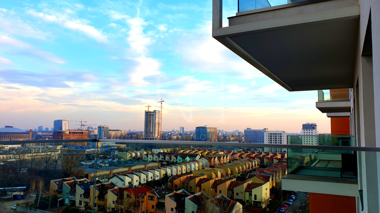 Vedere panoramică impresionantă către Romexpo – Herăstrău – Aviației, cu izolare fonică excelentă de agitația orașului.