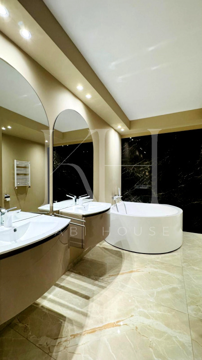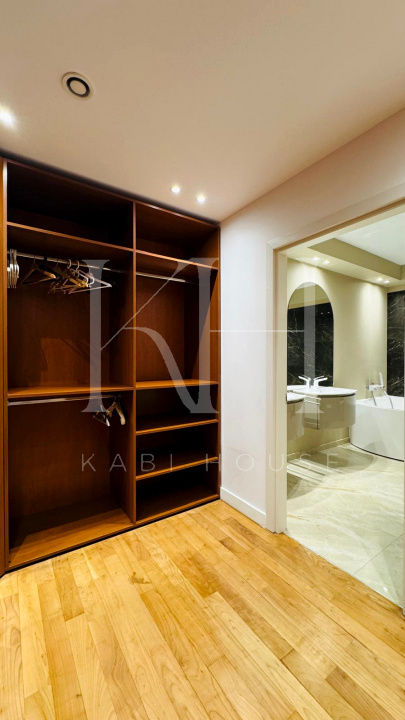Apartamentul este mobilat,marca premium,ofera o bucătărie complet echipată și mobilată, dressing încorporat, corpuri sanitare complete în băi și câteva elemente de mobilier de bază.